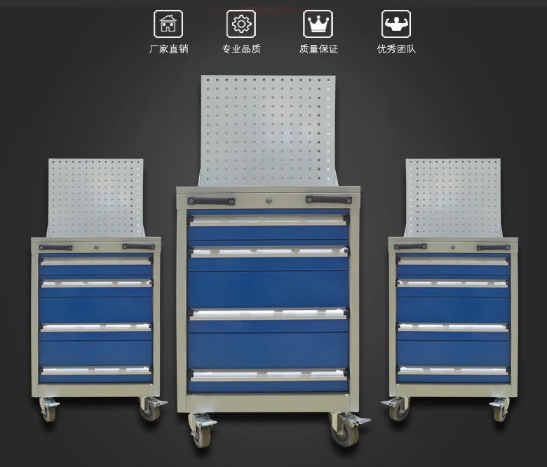 工具車由各種型號的工具柜增加頂柜和腳輪等移動部件組成。