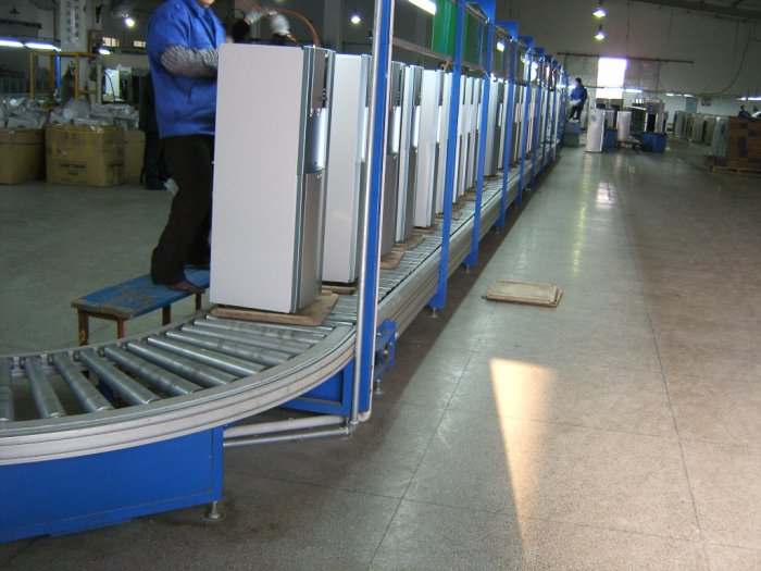 流水線又稱為裝配線,一種工業(yè)上的生產(chǎn)方式,指每一個生產(chǎn)單位只專注處理某一個片段的工作,以提高工作效率及產(chǎn)量;按照流水線的輸送方式大體可以分為:皮帶流水裝配線、板鏈線、倍速鏈、插件線、網(wǎng)帶線、懸掛線及滾筒流水線這七類流水線。一般包括牽引件、承載構(gòu)件、驅(qū)動裝置、漲緊裝置、改向裝置和支承件等組成。流水線可擴(kuò)展性高,可按需求設(shè)計輸送量,輸送速度,裝配工位,輔助部件(包括快速接頭、風(fēng)扇,電燈,插座,工藝看板,置物臺,24V電源,風(fēng)批等,因此廣受企業(yè)歡迎;流水線是人和機(jī)器的有效組合,最充分體現(xiàn)設(shè)備的靈活性,它將輸送系統(tǒng)、隨行夾具和在線專機(jī)、檢測設(shè)備有機(jī)的組合,以滿足多品種產(chǎn)品的輸送要求。輸送線的傳輸方式有同步傳輸?shù)?(強(qiáng)制式),也可以是非同步傳輸/(柔性式),根據(jù)配置的選擇,可以實現(xiàn)裝配和輸送的要求。輸送線在企業(yè)的批量生產(chǎn)中不可或缺。